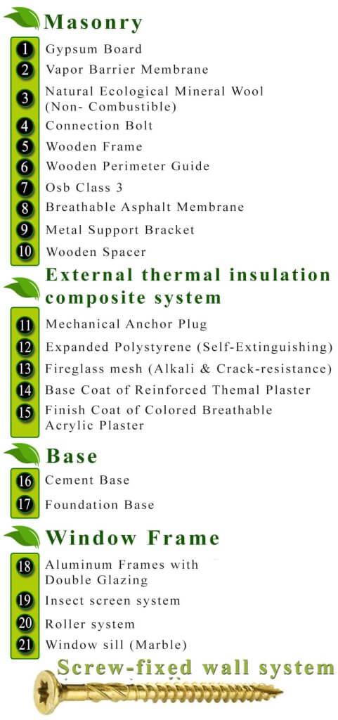 The most advanced energy system accompanying Androulakis’ Eco Energy System uses the best construction materials available on the global market: