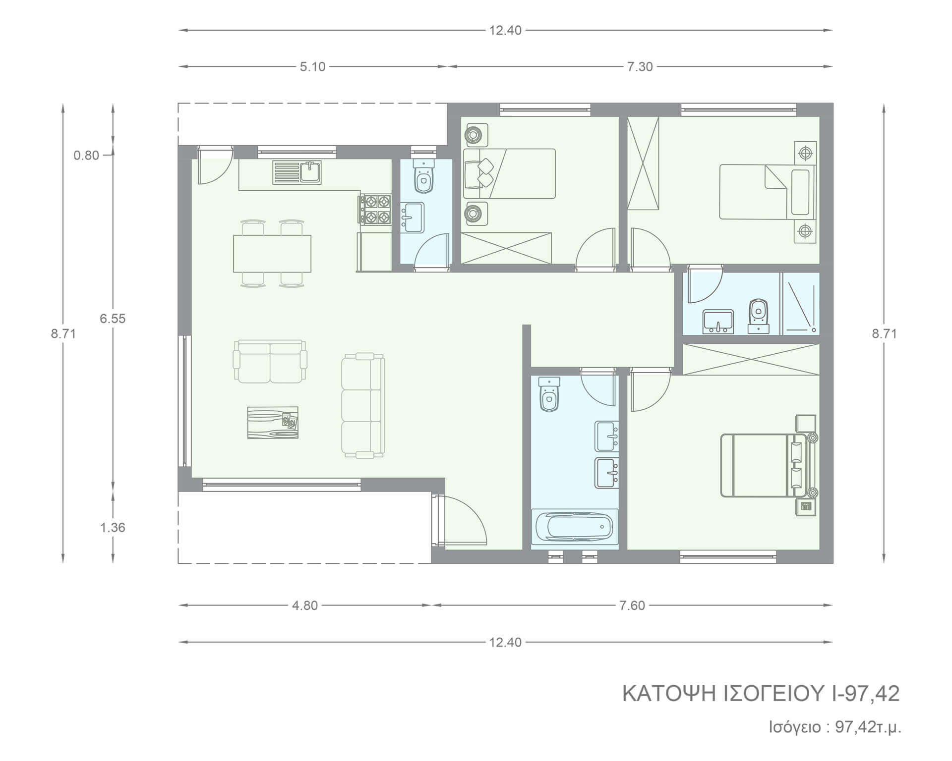 Ισόγεια κατοικία Ι-97i συνολικής επιφάνειας 97,42 τ.μ.