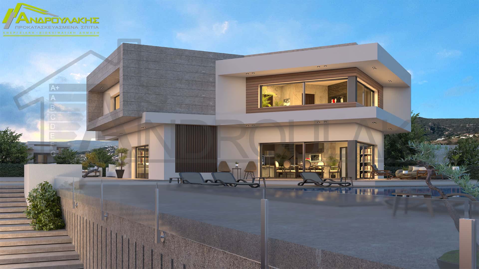 Η ΑΝΔΡΟΥΛΑΚΗΣ διαθέτει την απαραίτητη τεχνογνωσία & εμπειρία στην κατασκευή βιοκλιματικών κατοικιών. Κάθε βιοκλιματικό σπίτι κατασκευάζεται κατόπιν εμπεριστατωμένης μελέτης, μεμονωμένα για κάθε περίπτωση, στα πλαίσια της αρχιτεκτονικής μελέτης.