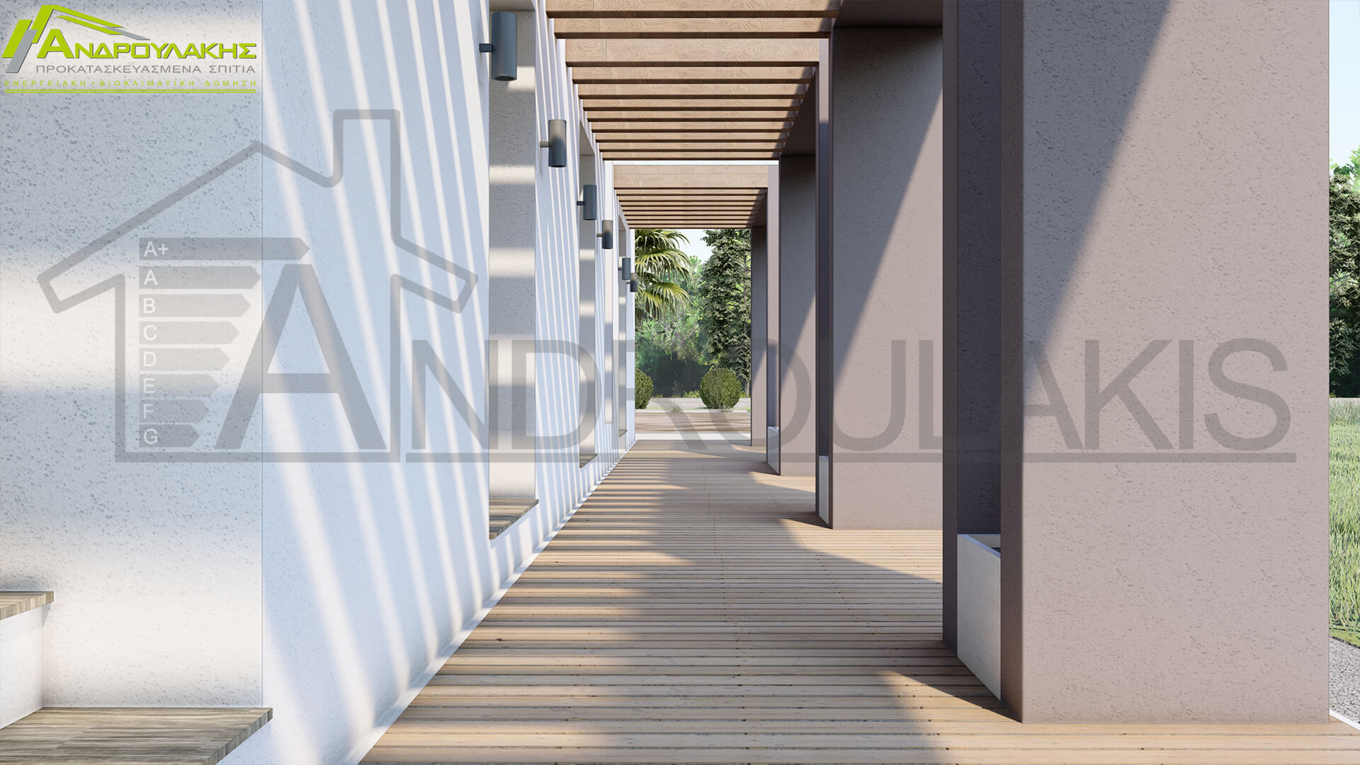 Η ΑΝΔΡΟΥΛΑΚΗΣ διαθέτει την απαραίτητη τεχνογνωσία & εμπειρία στην κατασκευή βιοκλιματικών κατοικιών. Κάθε βιοκλιματικό σπίτι κατασκευάζεται κατόπιν εμπεριστατωμένης μελέτης, μεμονωμένα για κάθε περίπτωση, στα πλαίσια της αρχιτεκτονικής μελέτης.