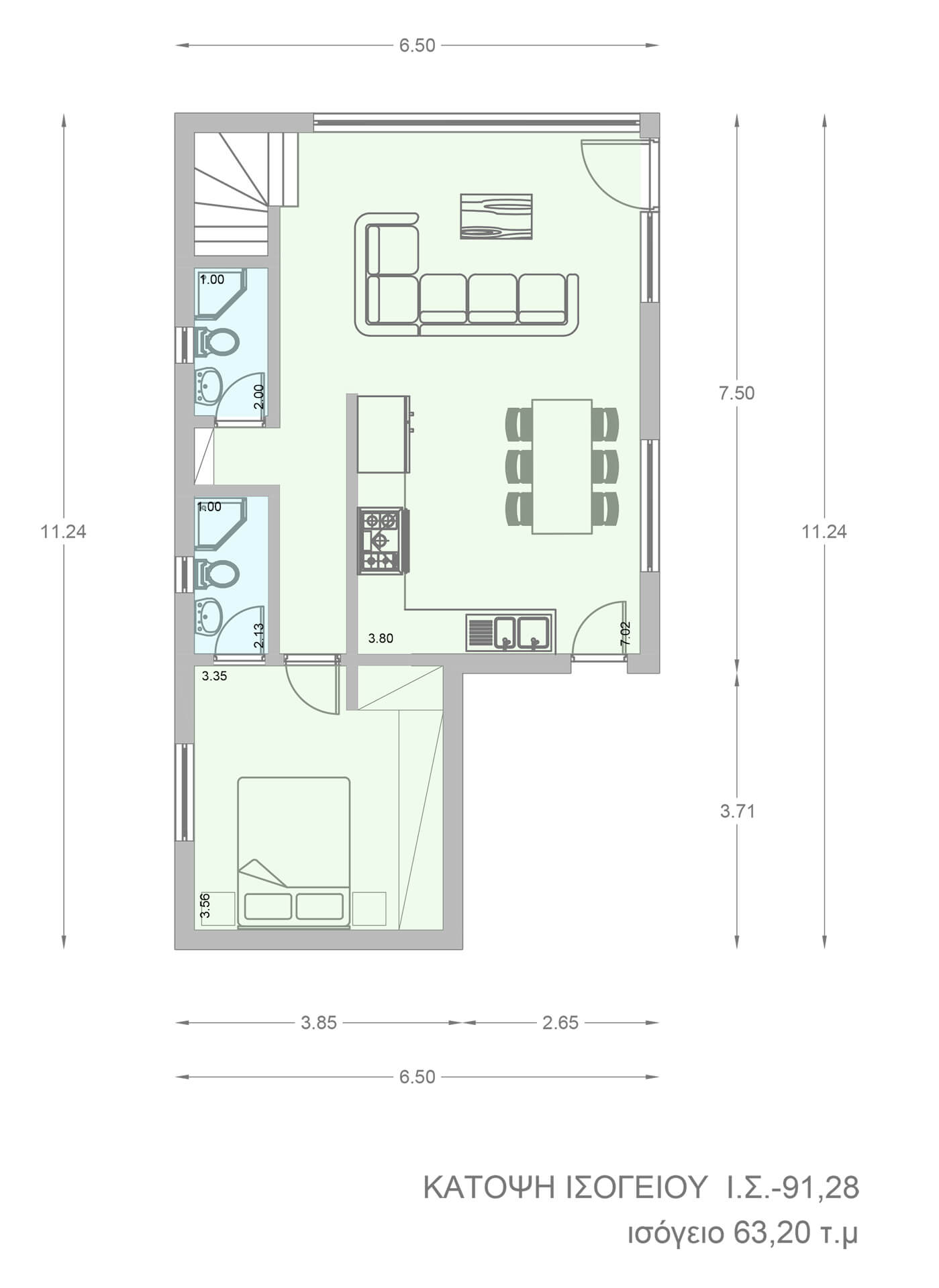 Luxury Ισόγεια κατοικία με σοφίτα Ι.Σ-91a συνολικής επιφάνειας 91,28 τ.μ.